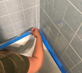 After the surface dries, you can tape off using painters tape. don't forget around your faucets!
