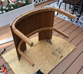 After the top pieces were cut, I used the jigsaw along the edges and cut the slats off. They were glued and pegged so cutting was the easiest way to get them loose.