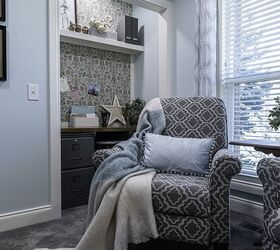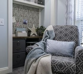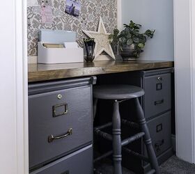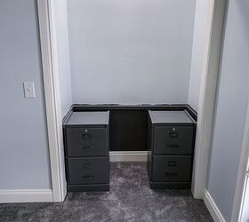 Two wood filing cabinets were also painted grey and placed in the nook.