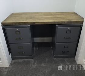 What a amazing space transformation. What color stain did you use on the butcherblock desktop? I think that's what I'm looking for. And those wooden file cabinets...She just happened to have them??? So lucky! Very well done.