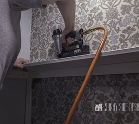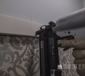 To finish off our floating shelf we placed a piece of molding along the front of the shelf and secured it to the shelf with brads.