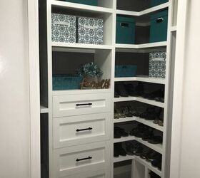 Over Christmas break, I began watching Tidying Up on Netflix and trying to better organize our closets. My master walk-in closet has always annoyed me, so I finally decided to tackle it! I tore out the wire closet shelving that was in there and created a DIY Closet Organizer with built-in drawers, shelves, and shoe storage. Here's an abbreviated description of how I built my closet organization system, for full details, please visit the tutorial on my website, link is at the bottom of this post.