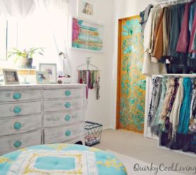I have been working on this spare bedroom on and off for 3 years now. With the lack of closet space we have in our home coupled with the fact we live in a state where the weather changes drastically from day to day I thought it would be great to build a "dressing room" or "walk in closet" somewhere where I could put out all my seasons of clothes and not have to waste the storage we do have on tubs of packed away sweaters and shorts. This room was all done for under $200. I repurposed quite a few items from around my home that I had in storage and anything bought was on sale or clearance.