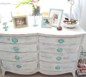This dresser was a hand me down from my parents. It was very scratched and beat up so I white washed it, scuffed it up and painted the pulls. I wanted a rustic bohemian vibe and though some may disagree....I just love the way it came out. ; )