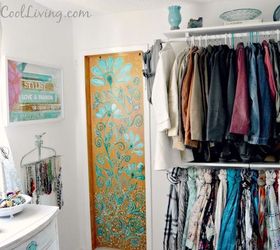 This side of the room has a bathroom door and the door to the room opens up to this side of the wall, so I had to keep the hanging racks shorter but it worked out great for my leather coats and scarves.