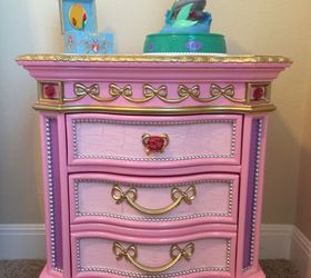 The Disney Princess furniture collection at Rooms To Go Kids is quite lovely, but not truly fitting of my little princess. After months of painting, I'm still not completed (sleigh bed left to do). I'm amazed at how lovely. I asked a furniture refinisher if he would do it...he said "of course." And sent me a quote of $7,000! I was flabbergasted, but now I know why it was so much. It is worth the effort though!