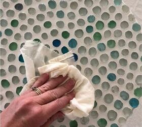 Right at four hours I dampened a cloth and started removing the grout haze off of the glass marbles.