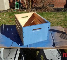Paint the crates to your choosing. I used a blue semi-gloss spray paint from Rust-o-leum for my finish. You really don't need to paint the backs or the sides that will be facing the walls if you are trying to save on spray paint.