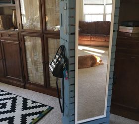 I have a full length mirror on the back. I couldn't believe it was only $5.99 from Target. The lazy susan hardware runs around $5 or $6 and the circle shaped piece of wood was $4.80 from Home Depot. This turned out to be a very budget friendly organization project.