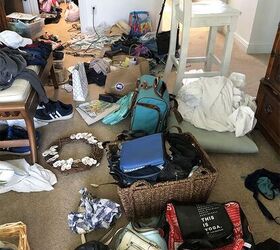 I am lucky enough to have my own walk in closet. When we were renovating this home, we added a whole second level to our house including 3 bedrooms, a playroom and 2 bathrooms. We had plenty of say in what we wanted. One thing my husband and I agreed on was that we wanted separate closets. It is not the biggest closet in the world, but I’m not complaining. I LOVE having my own closet, but my goodness can I be a slob sometimes.
