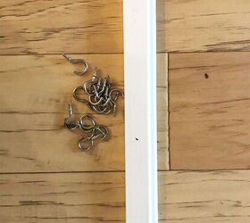 Once the paint dried, I began putting the hooks into the wood piece. I spaced them about an inch apart and then just screwed them in. I used my dremel tool to start a small hole making it a little easier to screw the hooks in. It isn’t completely perfect, but that is okay with me.