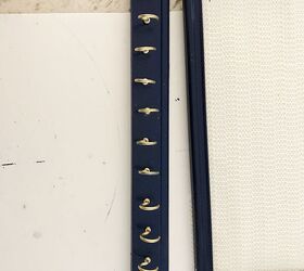 Once again, I spray painted them. The wood, navy, and the hooks, gold. Both of which I had on hand. The gold was just about gone so I figured I’d use it up. Luckily I had just enough.