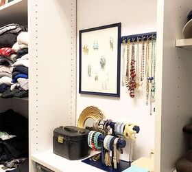 Doesn’t it look much better than the mess that was there before. This was pretty easy and very inexpensive to put together. Sure I could have gone out and bought some cute jewelry holders, but what fun would that be? LOL