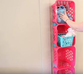 Watch the full how-to video to learn how you can make an easy and functional storage shelf for under $10! Everything you need for this project can be found at The Dollar Tree.
