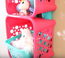 For this project, you will need some square dollar tree baskets. They come in so many different colours! I used 5 baskets for my shelf, but you can use as many as you would like. You will also need a pool noodle (also from the dollar tree) and some zip ties!