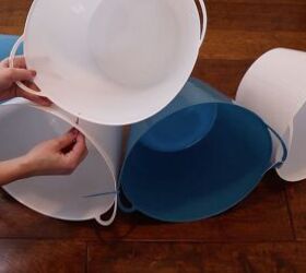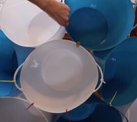 Let’s make a DIY toy organizer. For this project, you’ll need ten buckets and a collection of zip ties.