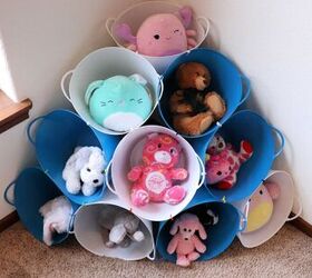My new organizer isn’t great for heavy things but is perfect to organize my kids’ stuffed animals. It is sitting in the corner of one of our play areas, and they can put in their stuffed animals and access them easily. I hope this inspired you to put those Dollar Store buckets to use and gave you an idea of how to build your own DIY toy storage organizer.