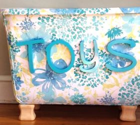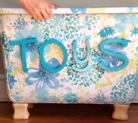 Do you have one of those plastic storage bins lying around? You know, the ones we use for moving, storing decorations and tucking away clutter? I've found another great use for these bins - a toy box! Create a playful toy box with a bin, fabric and a little glue.