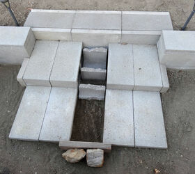 I needed to keep costs down, so I added various fillers and supports from leftover scrap. At the top of the ramp, I placed two pieces of concrete block cut-offs. At the bottom of the ramp, I used scrap wood with a couple of rocks to hold it in place.