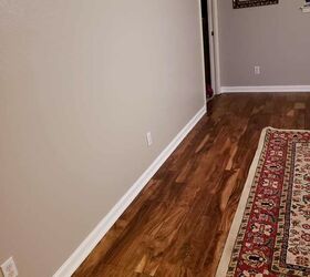 At the bottom of your door, you will need to cut a track for the guiding foot included in your barn door hardware set. The guiding foot keeps the door from swinging back and forth while opening/closing it. Keep this in mind when you are deciding placement of your finish nails on the bottom of the door. It was not fun cutting through our nails and then having to re-nail the segments on each side of the track.
