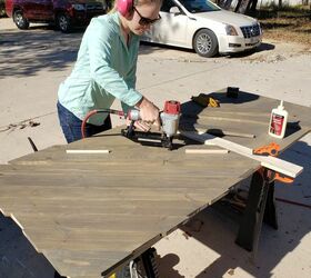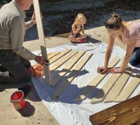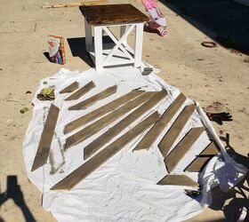 First we sanded each piece down to get it ready for staining. Clearly, my daughter was over sanding at this point - haha!
