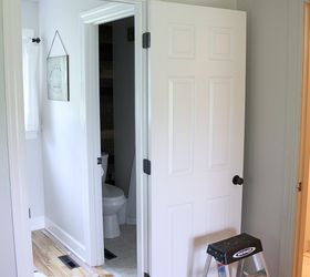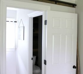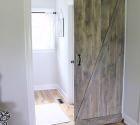 When we converted an unused 1/2 bath into a second closet in our master bedroom, we were left the same 3 doors all lined up in a row. By switching out the door to our bathroom for a DIY Barn Door, it would break up the monotony. Bonus – it’s a super easy DIY!