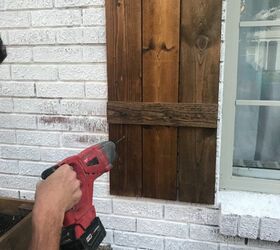 I’d like to note that we are not pros, but this is what we found to work for us. Here's how to attach wood shutters to brick.