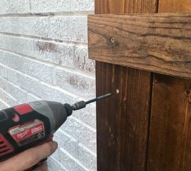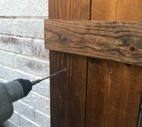 We prefer a more rustic look, and decided not to cover the screws with wood filler. If you’d prefer to have the screws hidden, just make sure you bury them into the wood enough to cover with a wood filler and then stain to match your shutter.
