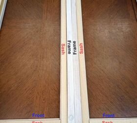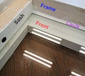 The frames are three pieces of wood assembled together. The window pane sits on the FRAME against the FRONT and the SASH holds it down.