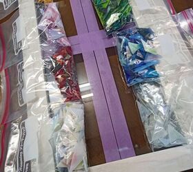 I took down the curtains and added two gorgeous DIY mosaic stained glass windows.