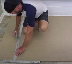 Next, I needed to measure and mark the board. I wanted to cut it down to 36”x80”. Once I had marked where I wanted to cut with a pencil, I took my circular saw and cut the board. This sheet will serve as the backing for the door, so if you need a different size door for your space, cut it to size.