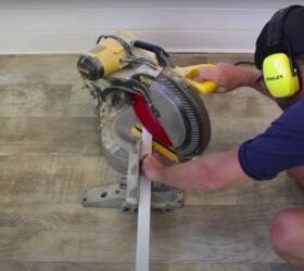 Then I matched up the angle of my miter saw to the lines I had marked and cut. Before making any more cuts, I checked to make sure that the piece I had cut fit snugly into the square on the door.