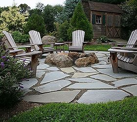 Flagstone Patio with Fire Pit. Installed over a 6" compacted stone base and 1" layer of bedding sand. Delaware County, PA