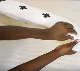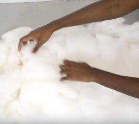 Take your staple gun to secure the sides of the fabric and keep stuffing the fabric to make it nice and full.