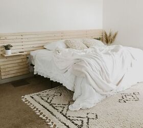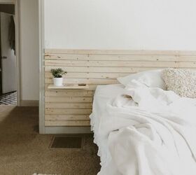 Wood slat walls are all the rage right now. I absolutely love the ambiance it adds to rooms, so I created my own take on it to add something beautiful to our bedroom.