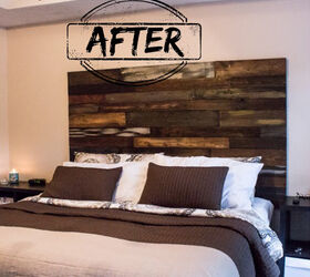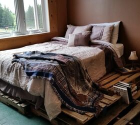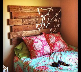 What about using some old pallets to create an eye-catching headboard design, rather than to make the whole bed? This is what Hometalker Kelsey McGinley did on this project, with spectacular results. She took a day to screw the wood onto the wall, as well as stain and paint it with a cute tree motif. It also worked out to be extremely inexpensive. Get tutorial here