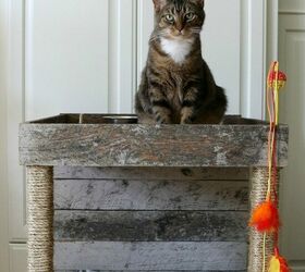 We have already seen pallet dog beds, so it is time for one for the cats. Hometalker Hoosier Homemade cleverly added feeding, relaxing, scratching, and playing areas her for her pampered pet. As well as a pallet, she also used scrap lumber, cut to size to complete the job. As a neat finishing touch, she wrapped the posts in rope for scratching. Get tutorial here