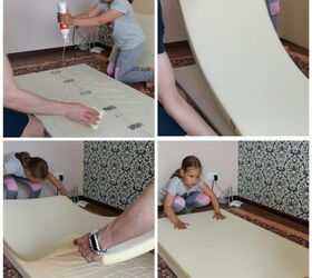 We connected pine boards together. Now it's time to glued foam rubber. I used 40mm thickness foam rubber. We applied two layers.