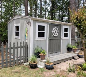 With a need for more storage for garden tools, Michele Pappagallo and her family built a new backyard shed. After clearing a small section of picket fencing to make way for the shed, the foundation was built using 2x6s. These were fitted onto concrete blocks for greater support and to keep the shed off the bare ground to breathe. The framework was sided, and a light gray metal roof was fitted to match this Hometalker’s nautical-themed home. Get tutorial here