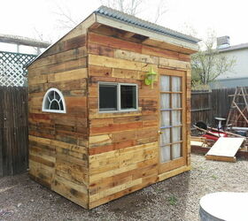 This garden shed was transformed by Dawn Shupick from a kids’ playhouse into a practical space for tinkering. The siding of the old kids’ playhouse was a nasty yellow painted OSB and plywood. This Hometalker wanted to improve the aesthetics of her new garden shed. They added a new roof using corrugated tin, before using free used pallet strips to nail to the sides of the shed, creating a rustic cladding. She used a natural Thompson water seal to weatherproof her new pallet siding. Get tutorial here