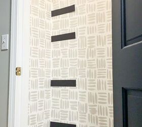 The DIY Wallpaper combined and the bright clean lines of these DIY floating corner pantry shelves has given new life to this small hall closet.