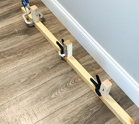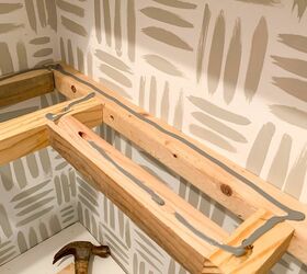All of the framework pieces were screwed into the studs using 3" screws and then attached to each other with Kreg Jig pocket joinery and wood glue.