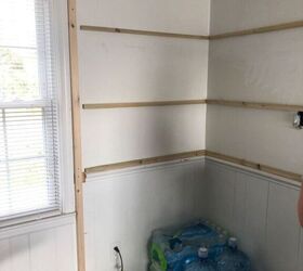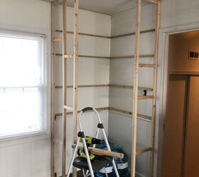 I decided on the larger of the 2 options (go big or go home, am I right?!). I started out by placing support boards on the wall where I planned to place my shelves. The vertical board is where I decided to place my outside wall.