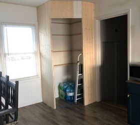 I finished off the space by adding trim and building a door. In my next post I go into detail concerning how I built the door. Pantry- DONE!!!