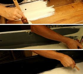 After the primer had dried, I painted a dark gray. Once the gray dried, I wanted a darker color so I used Old Fashion Milk Paint in "Pitch Black".