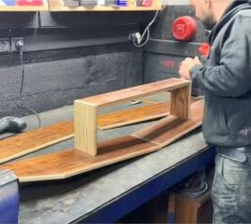 In the first stage I cut 4 equal pieces of wooden boards 70 cm long and 20 cm wide, and for each bracket I made a cut on the edge of a sharp triangle to simulate the edge of the plane wings