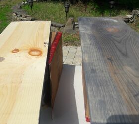 I had 3 pallet wood boards I searched for some wider boards , but couldn't find what I needed, so I aged some pine boards . See my tutorial " Quick & easy way to make a distressed wood board "