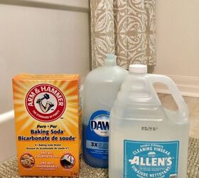 All you will need to clean your bathtub is 1 tbsp of blue dawn dish soap, 1/2 cup of white distilled vinegar, and 1/3 cup baking soda.