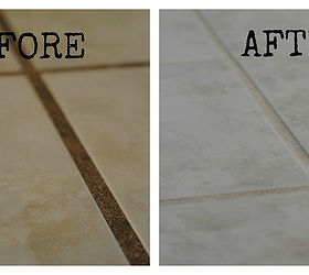 I have 3 Top Secret Tips for Cleaning with Vinegar. For the grout, you sprinkle baking soda on the lines, spritz with vinegar, and let sit for a minute. Then, simply scrub a little with a scrub brush. Full utorial on the blog.
