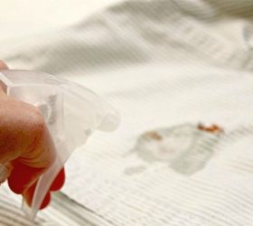 Damp the fabric and rub one of these magical sheets on it for an instant stain remover. Get tutorial here